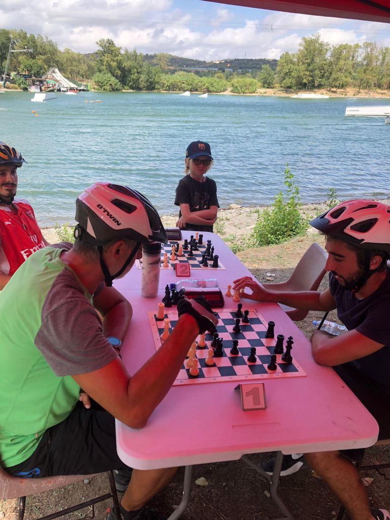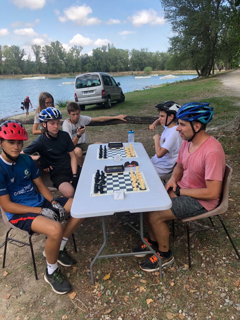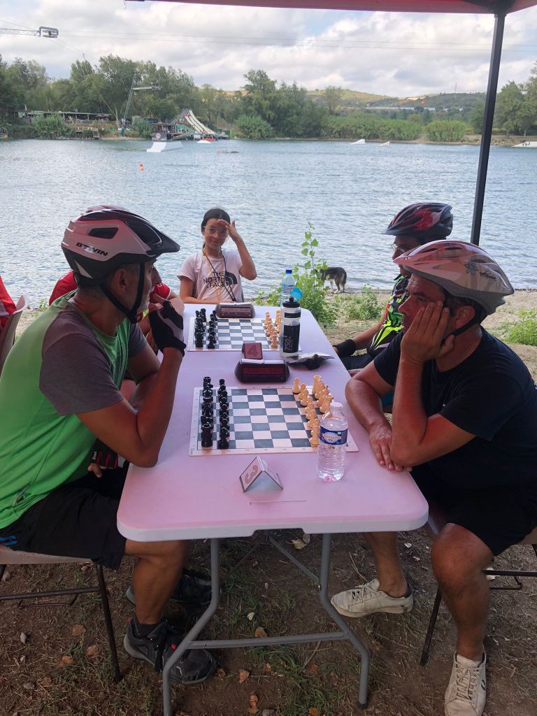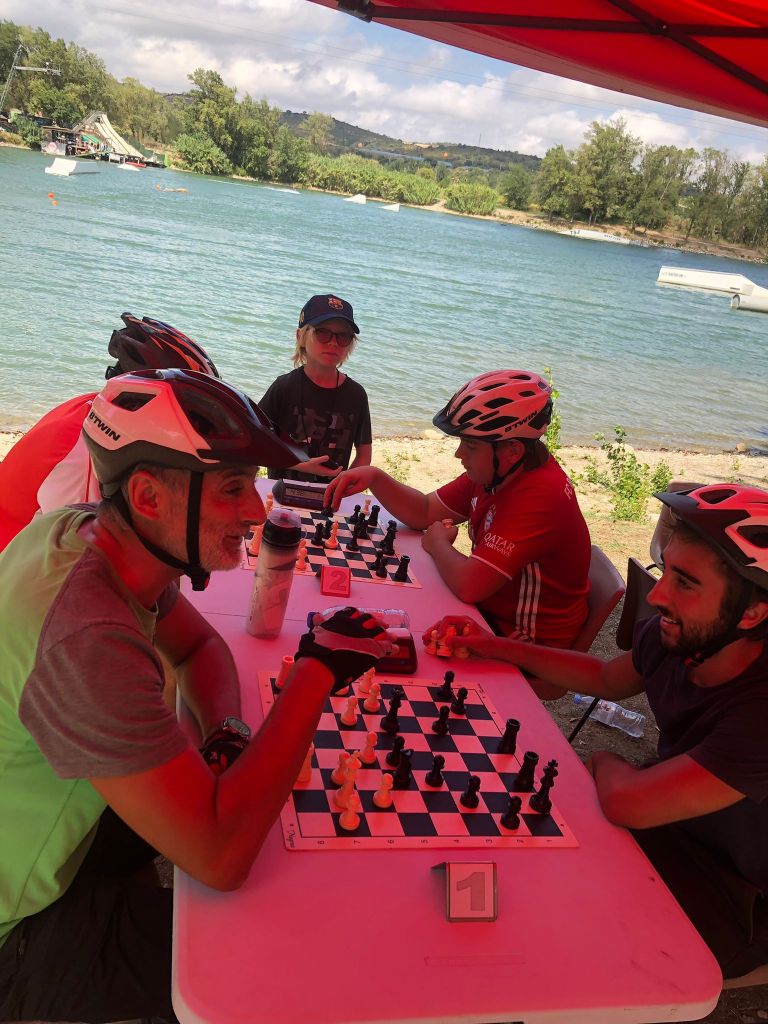Sur la journée du dimanche, 16 chessbikers de 16 ans jusqu’à la catégorie vétéran en ont fait de même sur un parcours VTT de 1200m autour du second plan d’eau de Saint Jean Pla de Corts.